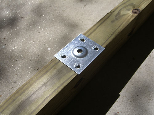 The top support post plates are secured with 1 inch lag bolts.