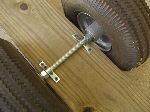 In order to easily move the beam I borrowed the wheels from my hand truck and attached them to the bottom of the beam.