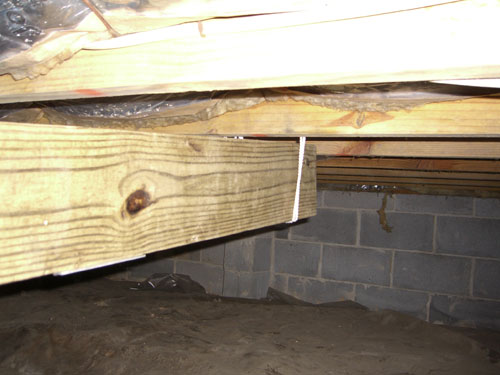 With only 2 feet between the dirt and the bottom of the joists there wasn't much room to work. Everything done under the house requires extra effort. The key to making things go smoothly is to do as much as possible outside of the crawl space.